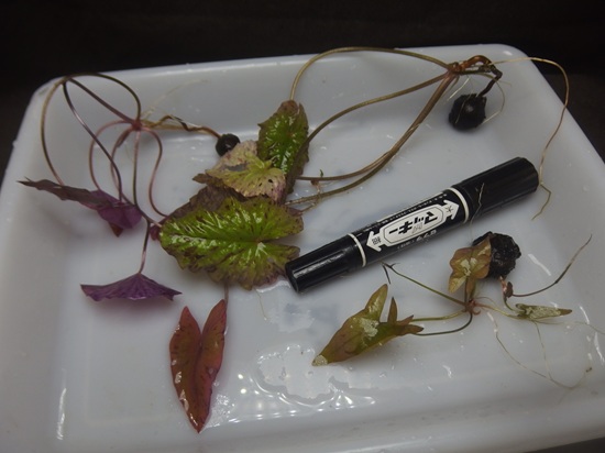 葉色なので水中でやってみましょう。